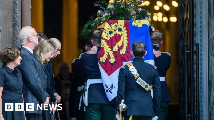 Soldiers from the Royal Dragoon Guard, of which she had been deputy colonel in chief, carried the coffin from the royal hearse into the cathedral.